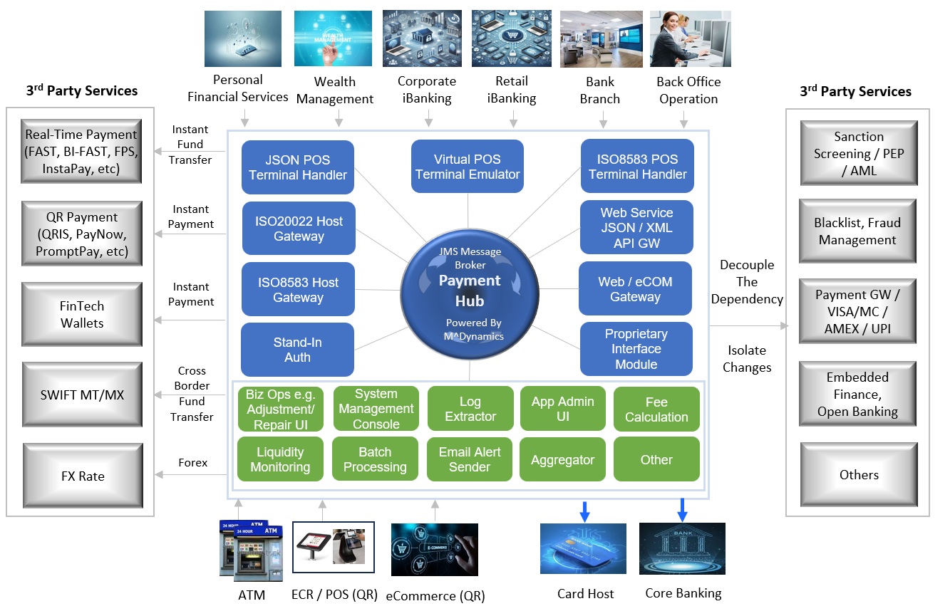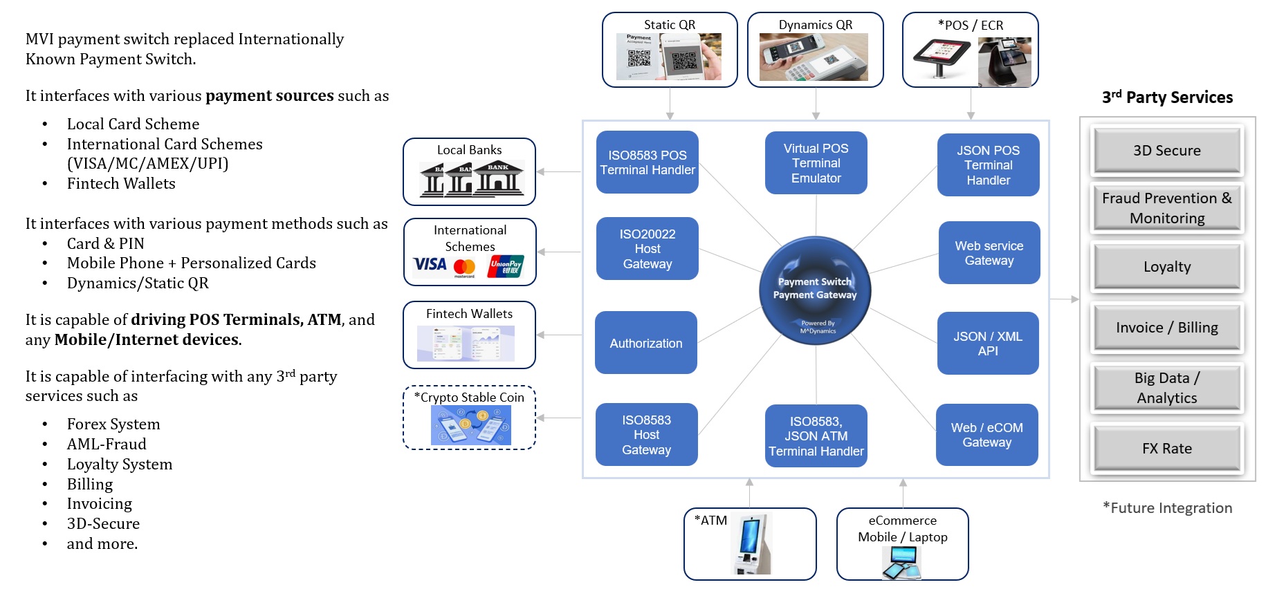 M^Dynamics-powered solutions provides you a new generation of enterprise payment and financial switching products with digital transformation capability, multi-currency, multilingual and interoperable features that supports multi-channels (terminal, tablets, mobile, browser, REST API etc.).